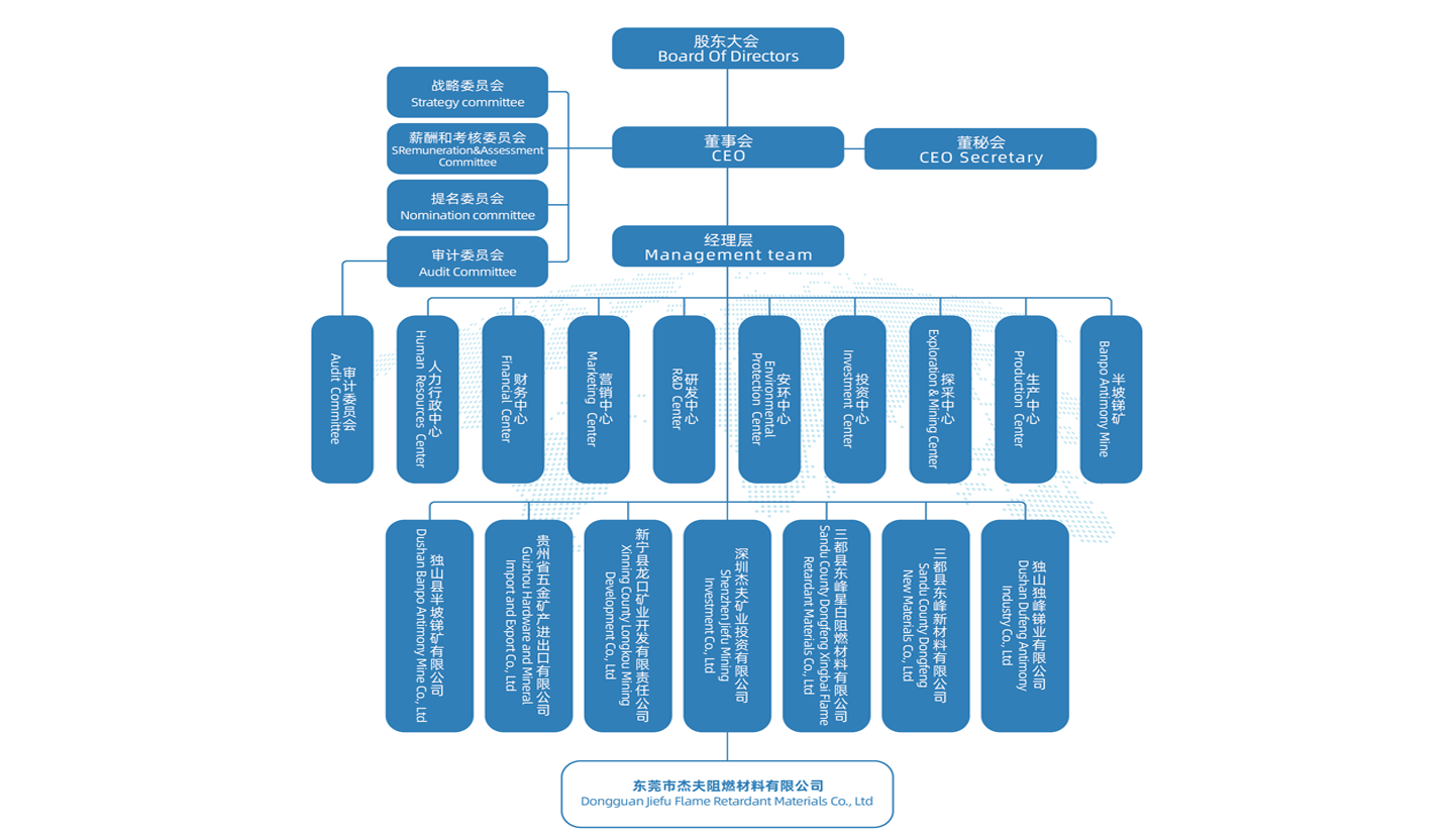 東莞市杰夫阻燃材料有限公司成立于2003年,注冊(cè)資本2500萬(wàn),是貴州東峰銻業(yè)股份有限公司下屬企業(yè)之一。在2003年通過(guò)ISO9001質(zhì)量管理體系認(rèn)證, 2012年通過(guò)ISO14001環(huán)境體系認(rèn)證;自2004年開(kāi)始至今,公司每年均取得了中華人民共和國(guó)商務(wù)部認(rèn)定的銻品出口供貨企業(yè)資格。