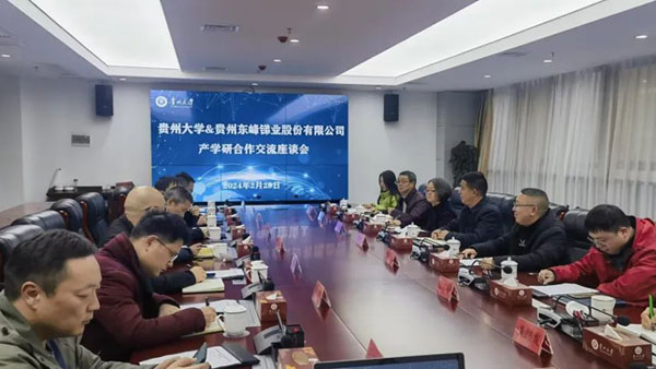 2024年2月29日,在黔南州科技局領(lǐng)導(dǎo)的大力助推下,東峰銻業(yè)與貴州大學(xué)產(chǎn)學(xué)研合作交流座談會(huì)在貴州大學(xué)賢正樓順利召開。東峰銻業(yè)股份有限公司總經(jīng)理覃事敦與貴州大學(xué)科學(xué)技術(shù)研究院院長(zhǎng)吳復(fù)忠教授等雙方代表就如何深化合作、共同推動(dòng)產(chǎn)學(xué)研一體化發(fā)展進(jìn)行了深入交流。